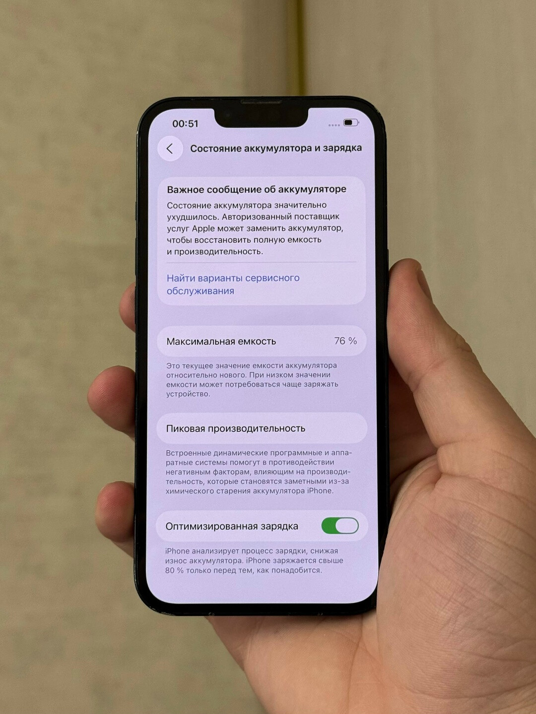 4.5. Состояние аккумулятора (процент, циклы, замена).